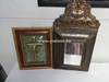 Kruisbeeld in "vergulde kader" | Bid: €1,00 | + spiegelkastje |